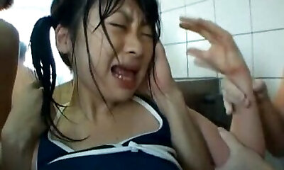 Four Asian dudes boink hook-up-appeal Japanese whores in the pool