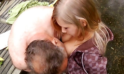 Fatt and ugly oldman does a naive teenager platinum-blonde