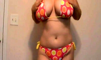 Lateshay 36 G pink polka dot bikini bbw unclothe tease - Fuckin' Bitch!