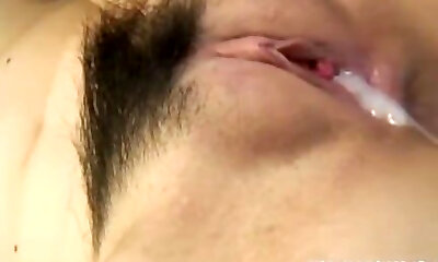 Steamy Japanese honey Rei Serizawa gets creampied into hairy snatch