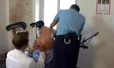 Doctor inserts ass-plug in rosy-jugged nurse's wide-open cunt